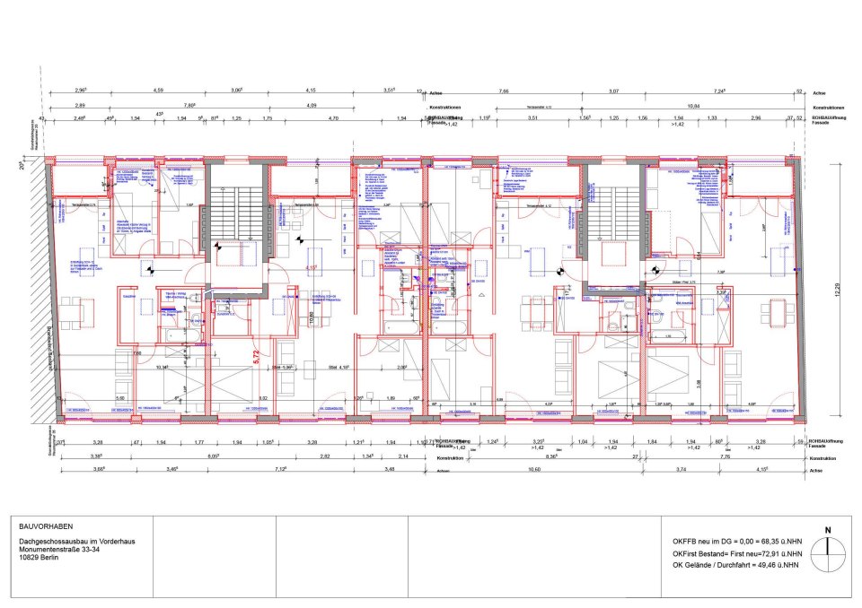 Das 5-geschossige Wohnhaus, welches zu einem 7.000qm großen Gewerbehof in der Schöneberger Monumentenstraße gehört, wurde im Rahmen eines Dachgeschoßneubaus mit vier zusätzlichen Wohnungen ausgestattet. Das Gebäude verfügt über zwei Aufgänge, je Aufgang wurden zwei Wohnungen à 75 und 95qm als Mietwohnungen hergestellt.